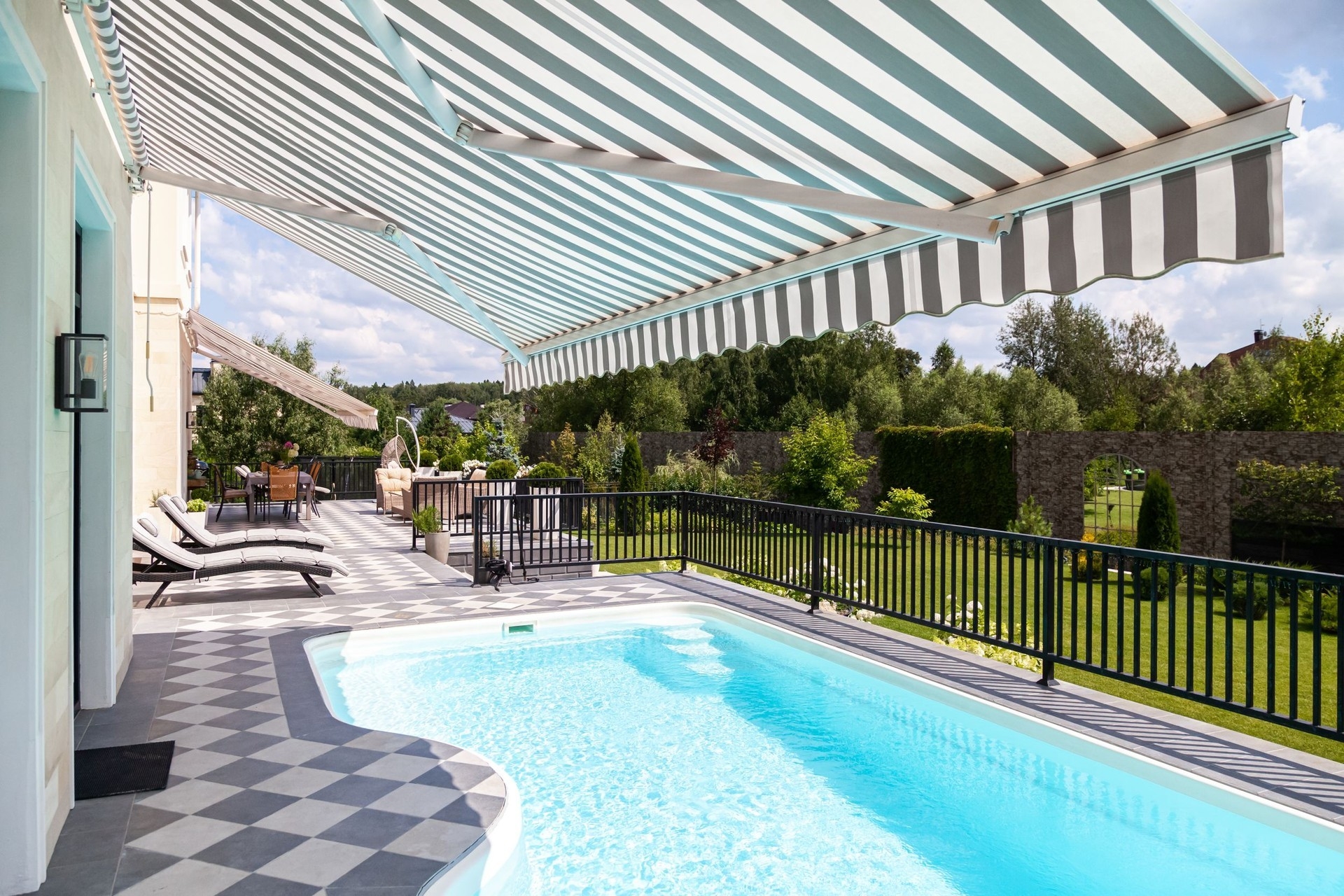 Ещё одно решение, которое подходит именно нашей семье - подогреваемый уличный бассейн на патио, который используется круглый год.