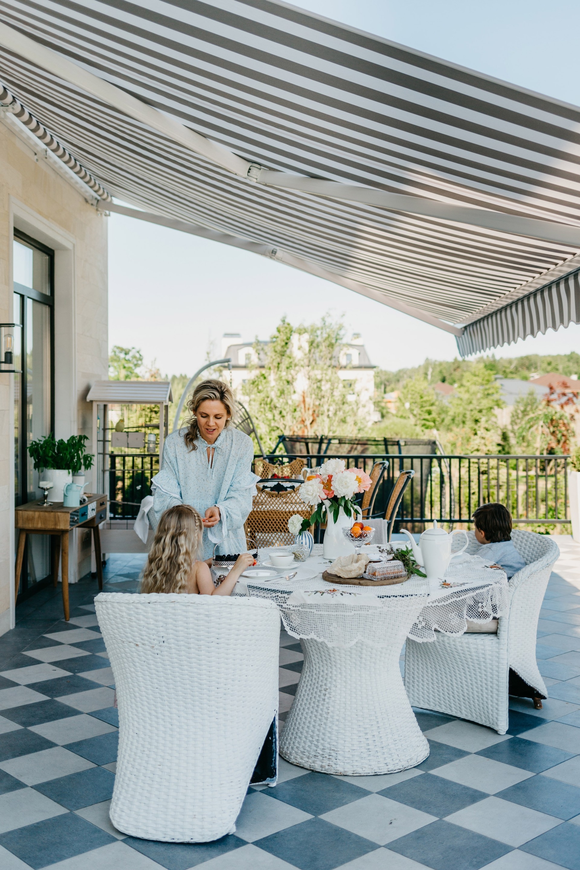 Первое, что стало понятно - беседка (патио, терраса), должны быть частью дома, соединенной с кухней и столовой, чтобы не ходить к отдельно стоящему строению.
