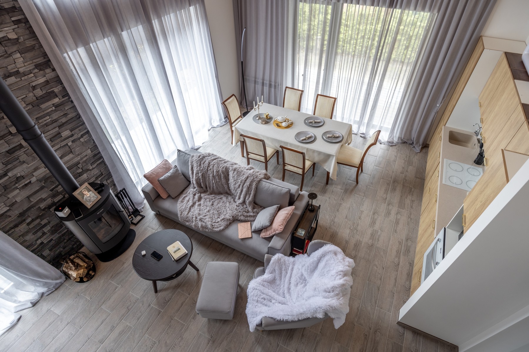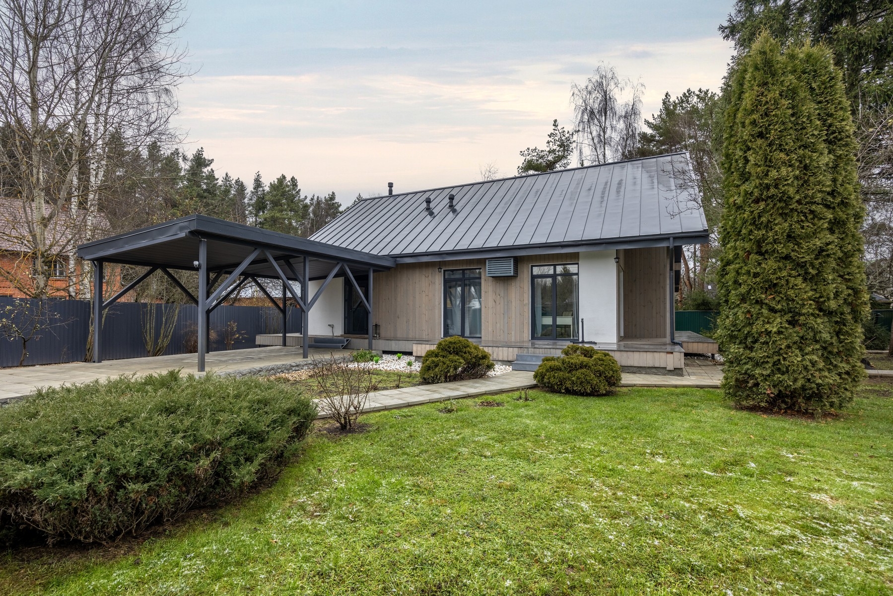 Первое, что стало понятно - беседка (патио, терраса), должны быть частью дома, соединенной с кухней и столовой, чтобы не ходить к отдельно стоящему строению.